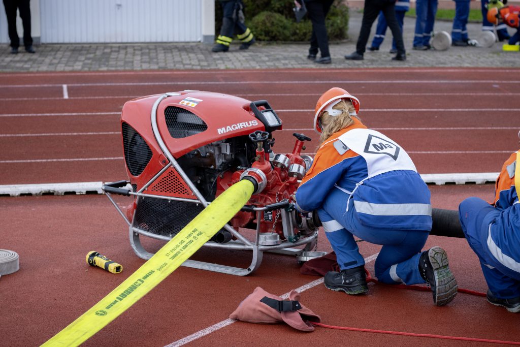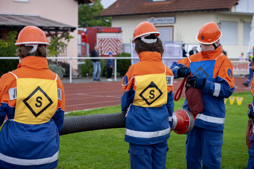 Beim Kugelstoßen, einem Staffellauf über 1500m bis hin zum Feuerwehrtechnischen Löschgruppenaufbau nach FwDV3, einer Schnelligkeitsübung, bei der es galt, 120m C – Schläuche in einer gewissen Zeit zu kuppeln und der Beantwortung einiger theoretischer Fragen mussten die Jugendlichen zeigen, was sie in den vergangenen Wochen geübt und erlernt hatten.