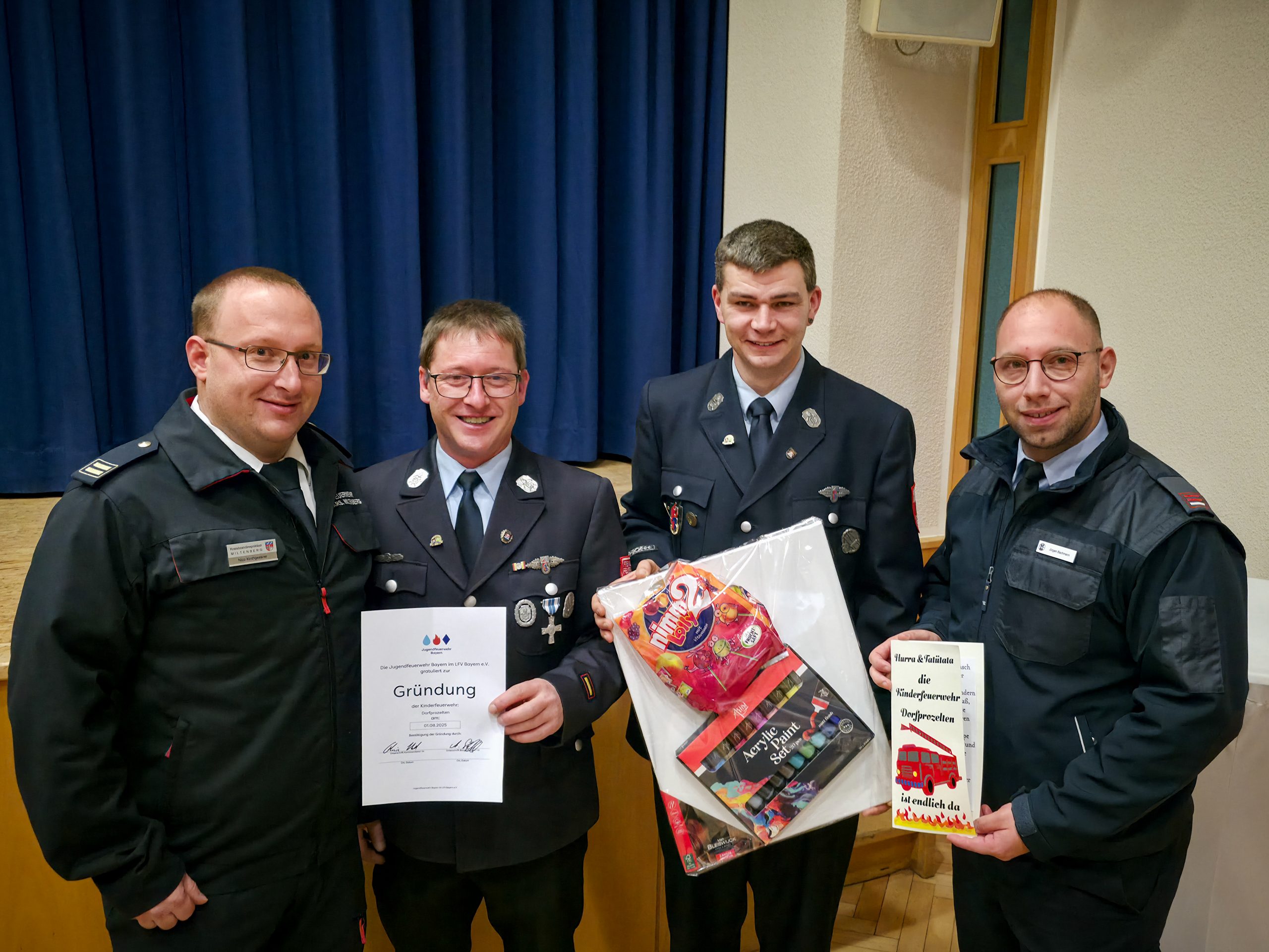 Am Mittwoch, den 19. November 2025 war es endlich soweit, die nรคchste Kinderfeuerwehr bei uns im Landkreis Miltenberg ging an den Start! Im Rahmen der Generalversammlung der Freiwilligen Feuerwehr Dorfprozelten wurde mit der Unterschrift des Kommandanten und des stellvertretenden Bรผrgermeisters die Grรผndung der Kinderfeuerwehr besiegelt, nachdem diese bereits am 01.08.2025 bei der Deutschen Jugendfeuerwehr angemeldet wurde. Unser Kreisjugendwart Nico Kirchgessner รผberbrachte die besten Wรผnsche der Kinder-und Jugendfeuerwehr des Landkreises Miltenberg und wรผnschte der neuen Kinderfeuerwehr allzeit gutes Gelingen! Zum Schluss รผberreichte der Fachbereich Kinderfeuerwehr, vertreten durch Jรผrgen Bachmann, ein kreatives Geschenk zum Auftakt der neu gegrรผndeten Kinderfeuerwehr. Seine Kollegin Anja Neukirchen lieร sich krankheitsbedingt entschuldigen. Wir wรผnschen der Kinderfeuerwehr Dorfprozelten allzeit gutes Gelingen und viel Erfolg in der weiteren Zukunft!