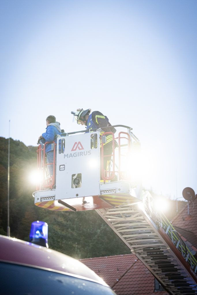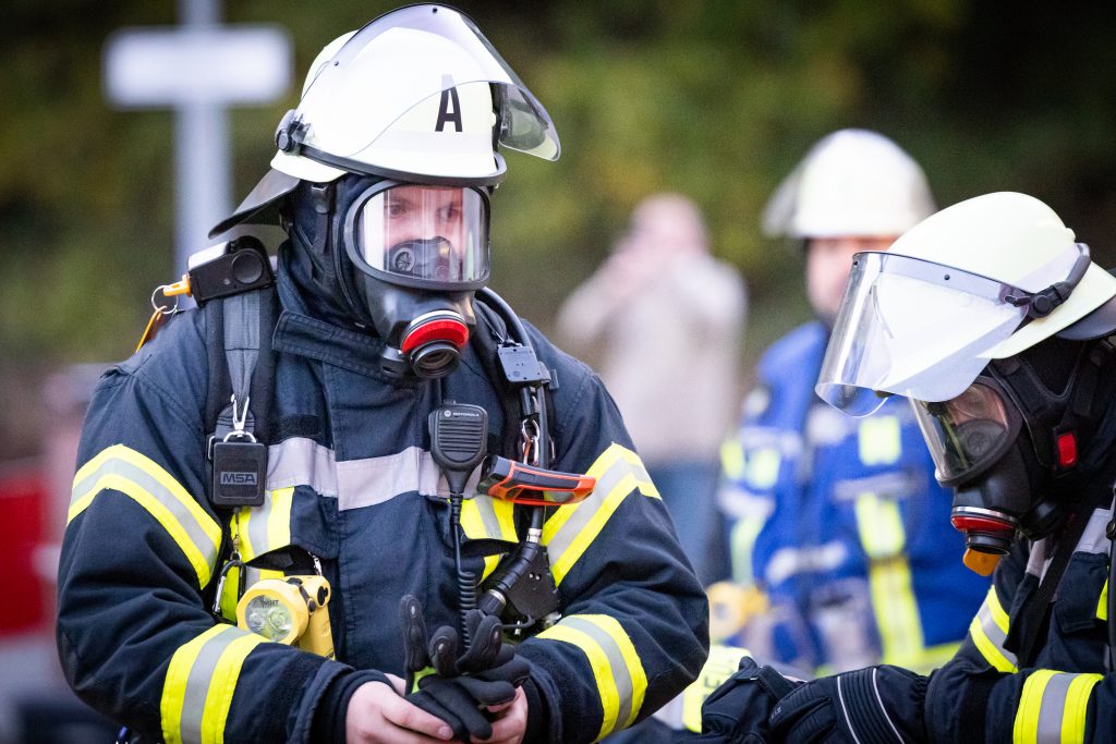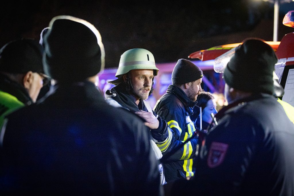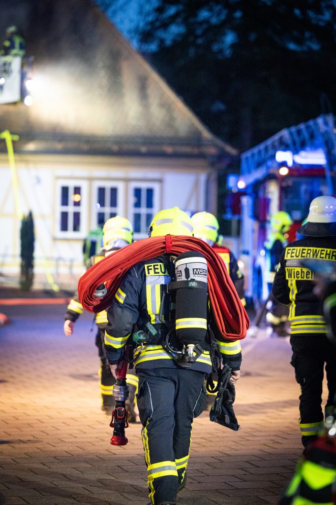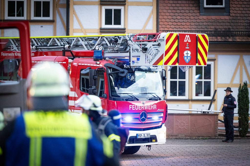 Die Feuerwehren Hasloch, Kreuzwertheim, Röttbach, Hasselberg und Wiebelbach aus den KBM Bereich MSP 2/1 und die Feuerwehr Faulbach aus dem Bereich MIL 2/4 wurden am Freitag, den 24.10.2025 um 18.00 Uhr zu einer Einsatzübung mit dem Stichwort B3 Person zur WSV (Wasserstraßen – und Schifffahrtsverwaltung des Bundes) in Hasloch alarmiert. Angenommen wurde das Jugendliche, die in das Gebäude eingebrochen sind und dort gezündelt haben, vermisst werden. Nachdem über zwei Drehleitern und verschiedene Steckleitern die acht Jugendlichen durch Atemschutzgeräteträger*innen gerettet wurden, galt es den Brand über zwei Wenderohre zu bekämpfen. Die Wasserversorgung erfolge durch 3 PFPN, die im Hafenbecken das Löschwasser ansaugten und durch Löschfahrzeuge verstärkt zu den Drehleitern förderten. Neben der Rettung über Leitern bildete die Kommunikation und Zusammenarbeit zwischen den Feuerwehren sowie der beiden ILS die Schwerpunkte der Übung, an der sich über 70 Kräfte beteiligten. Beobachtet wurde die Übung von Führungskräften aus beiden Landkreisen. Die Übungsziele wurden erreicht und die eingesetzten Kräfte konnten nach einer Stärkung wieder in die Gerätehäuser einrücken.