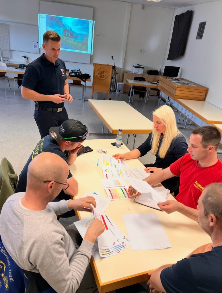 Dabei wurden Gefahren bewertet, Einsatzschwerpunkte festgelegt und Einsatzabschnitte gebildet. Auch Themen wie Nachalarmierung, Funkskizze und die strukturierte Organisation spielten eine wichtige Rolle.